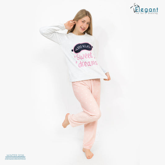 Rib Cotton Knot Front PJ Offwhite - Soft Hearts in Pink