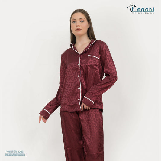Satin Long sleeves Classic PJ Pants - Jacquard Burgundy