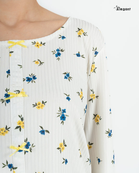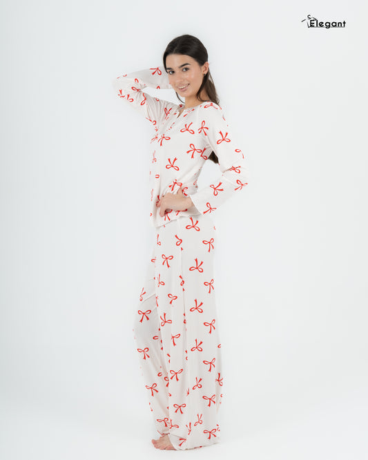 Ribbed V Neck PJ Offwhite - Charming Bow