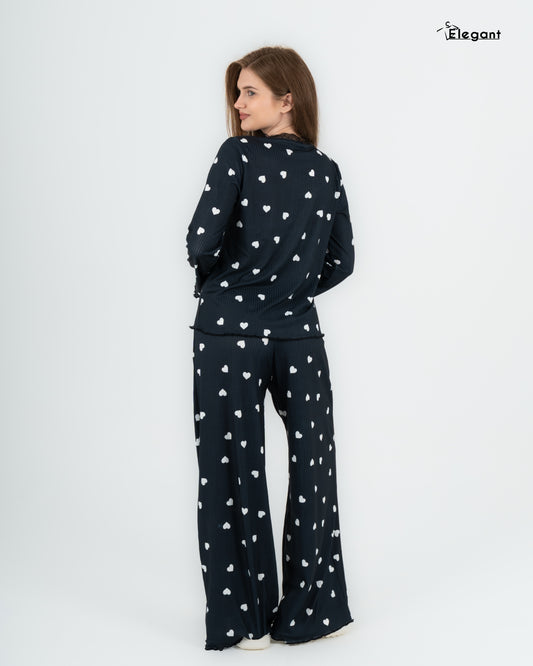 Cotton Long sleeves Wide Leg Classic PJ - Navy