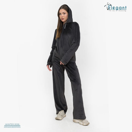 Velvet Zipper Wide Leg with Hood - Dark Grey