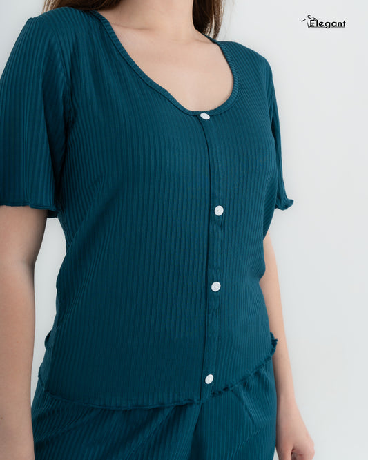 Ribbed PJ Shorts, Buttoned - Deep Teal
