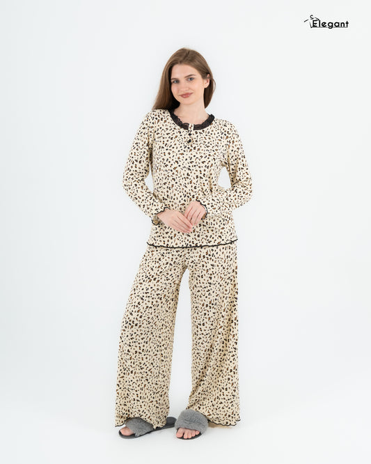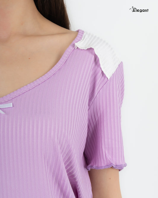 Straps Ribbed PJ Pants - Contrast ruffles - Lilac