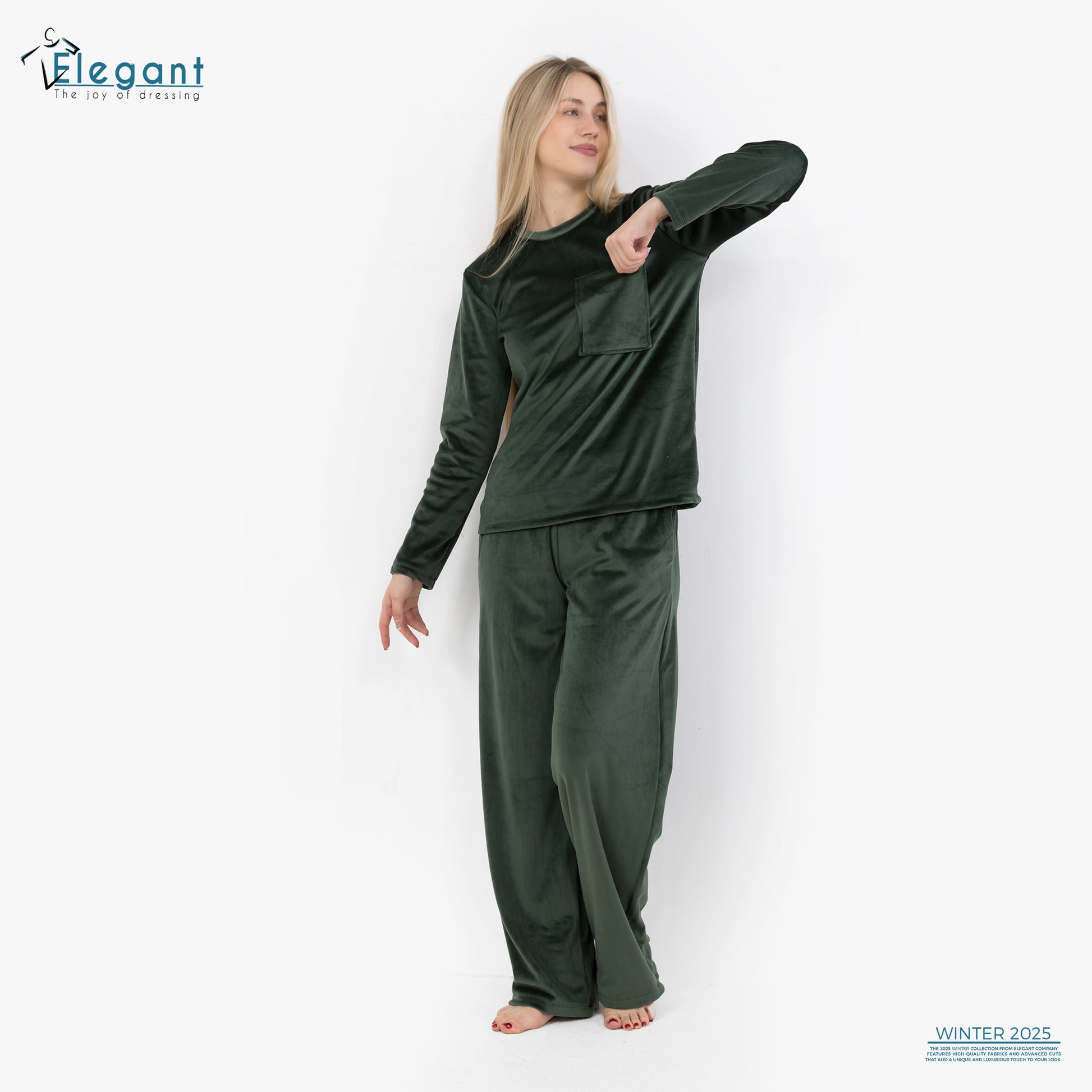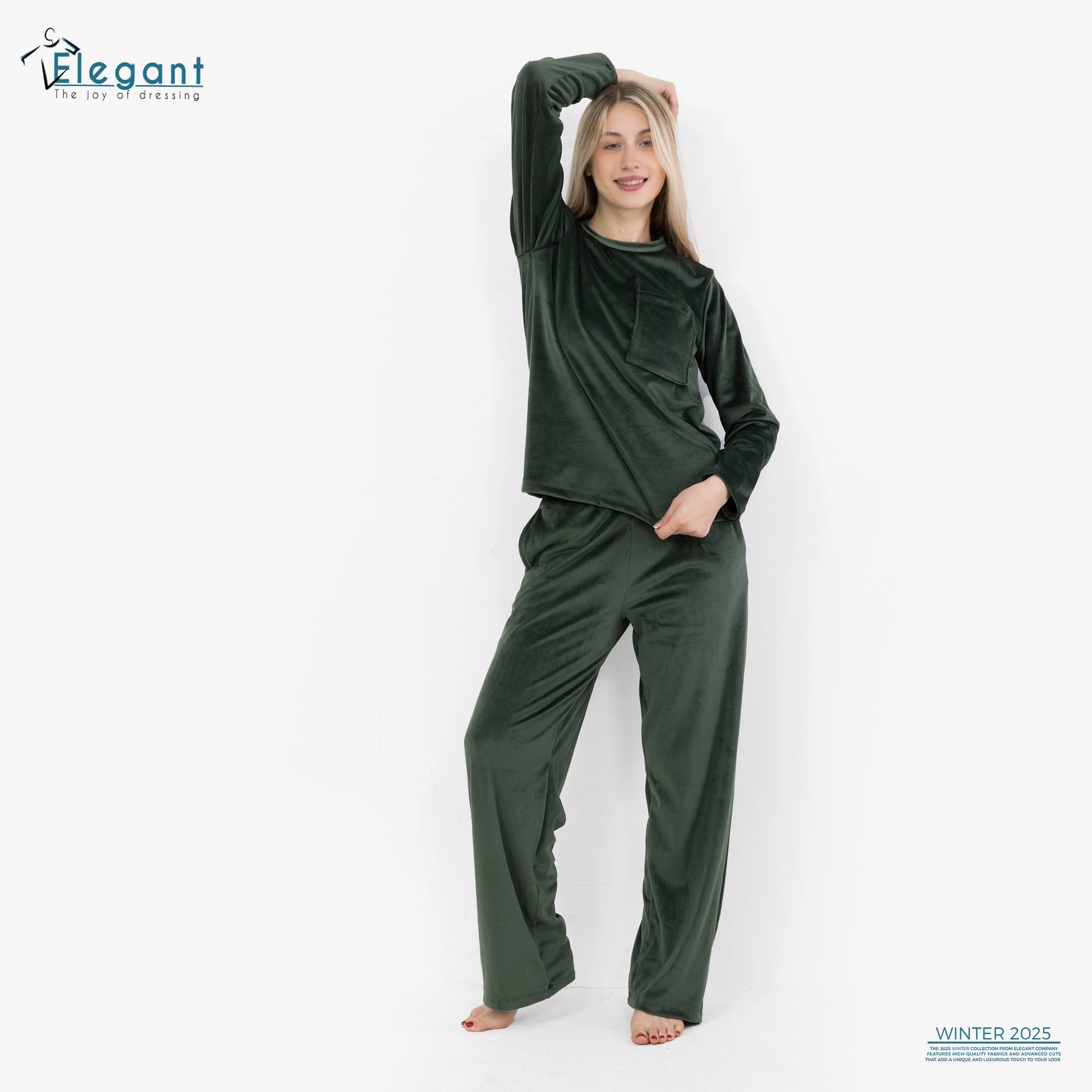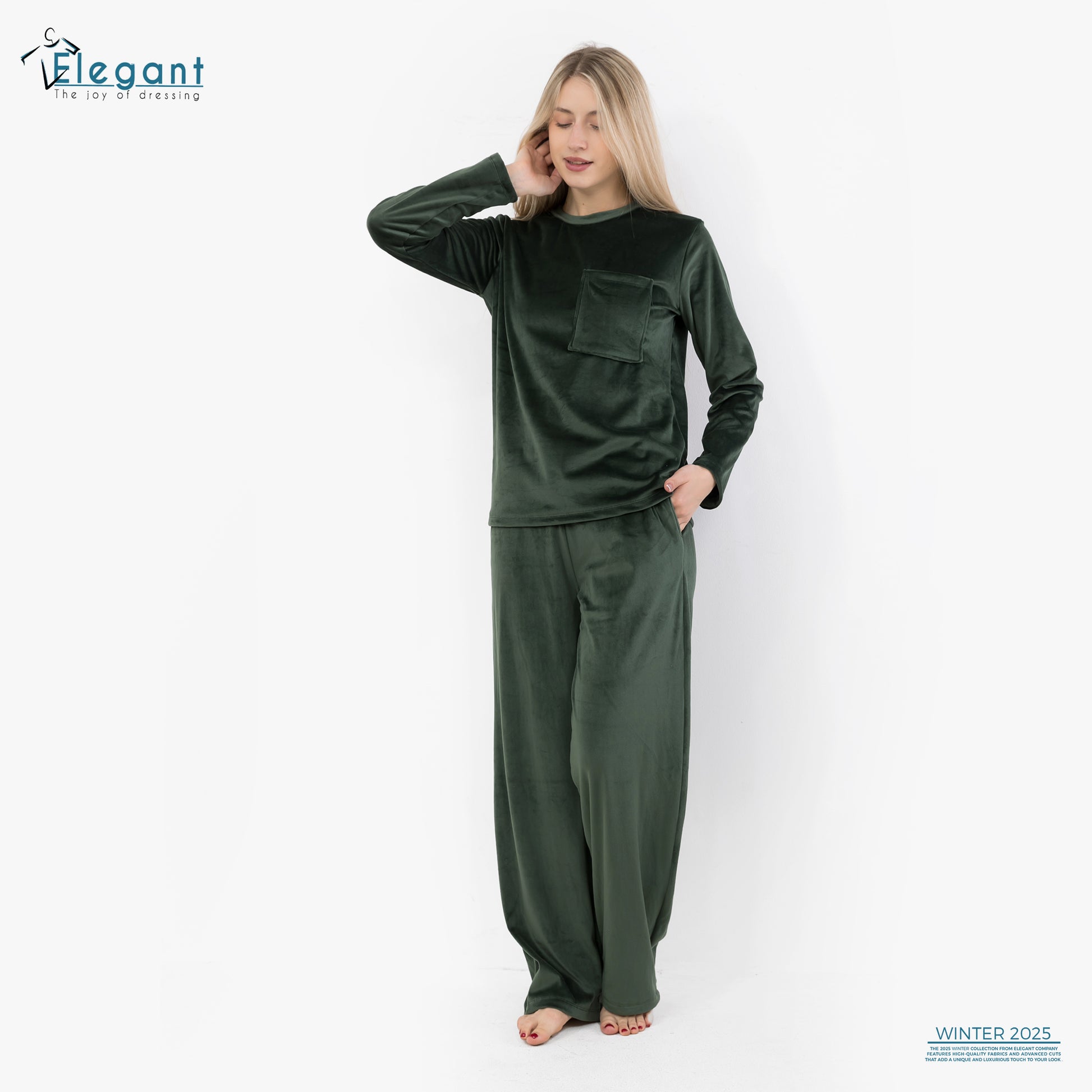 بيجامة مخملية بجيوب واسعة - أخضر زمردي