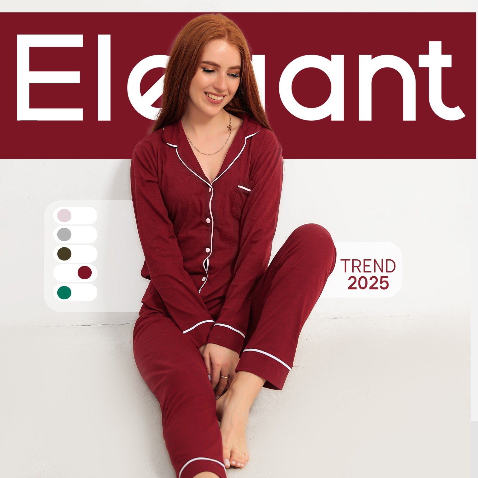 Cotton Long sleeves Classic PJ Pants - Burgundy