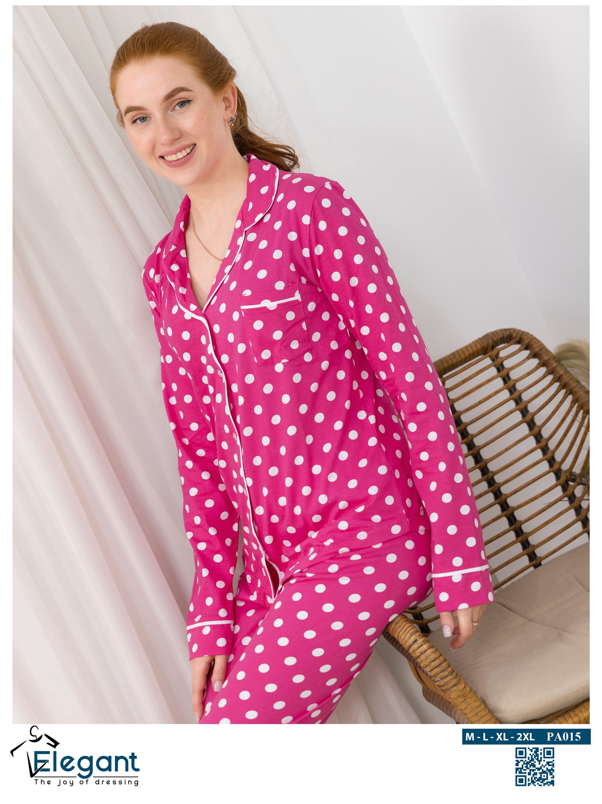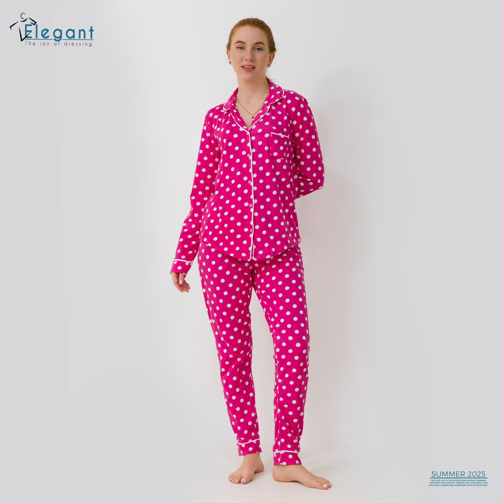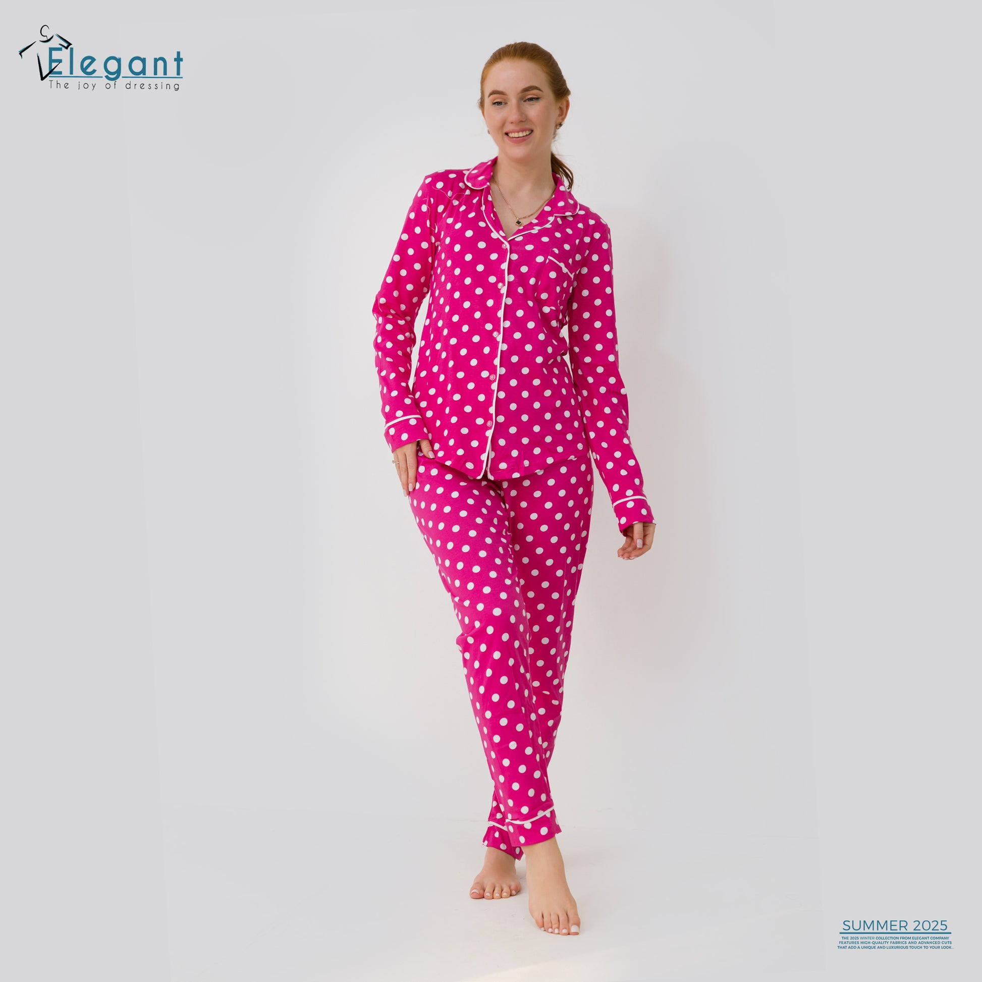Cotton Long sleeves Classic PJ Pants - Fushia Polka Dots
