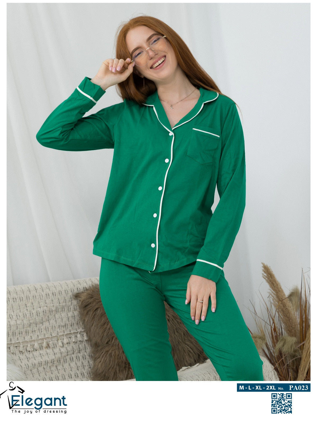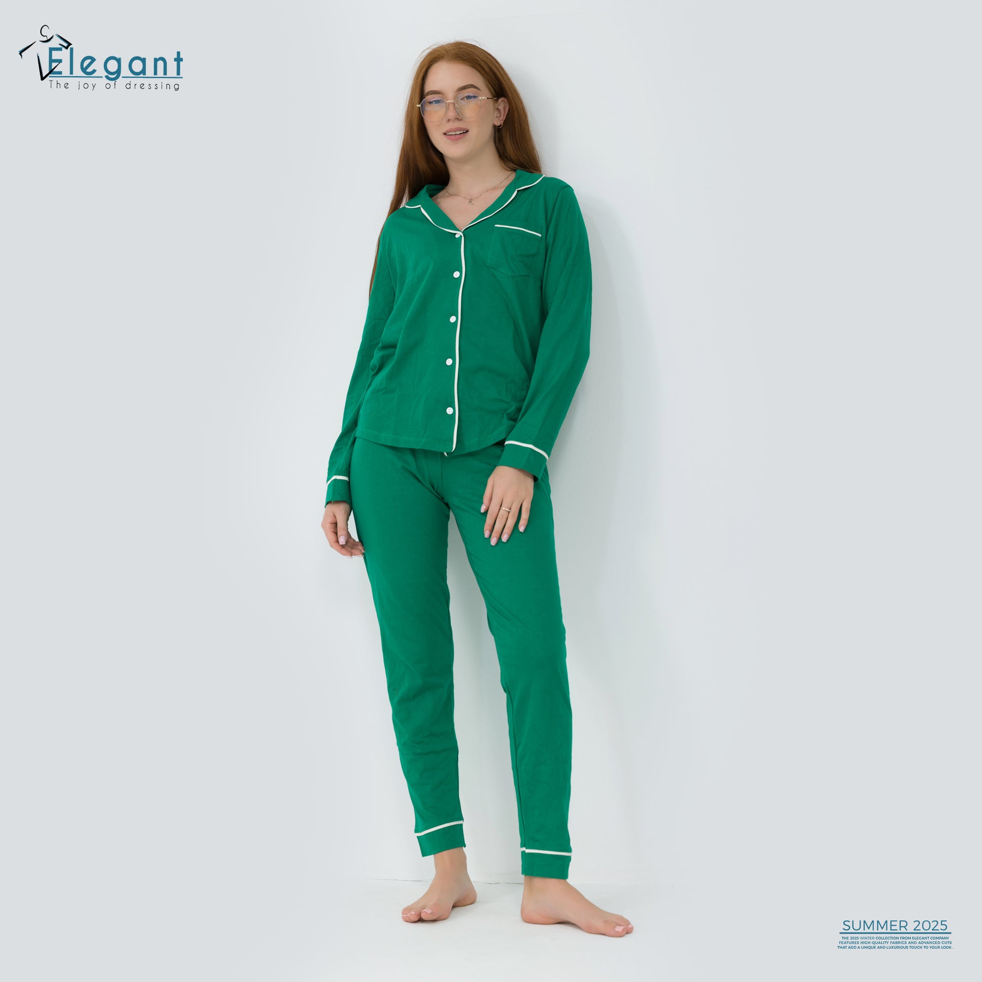 Cotton Long sleeves Classic PJ Pants - Green
