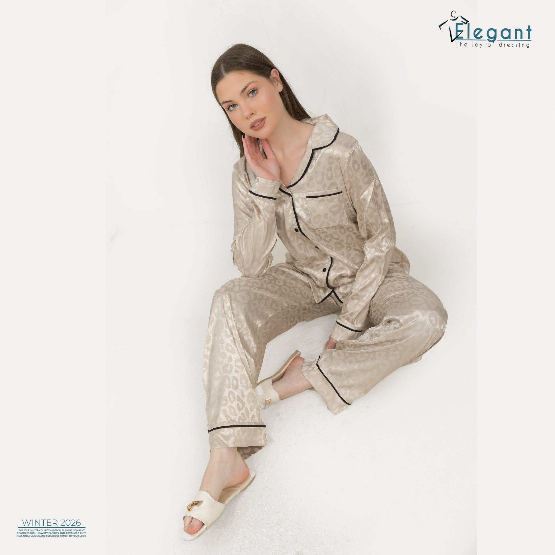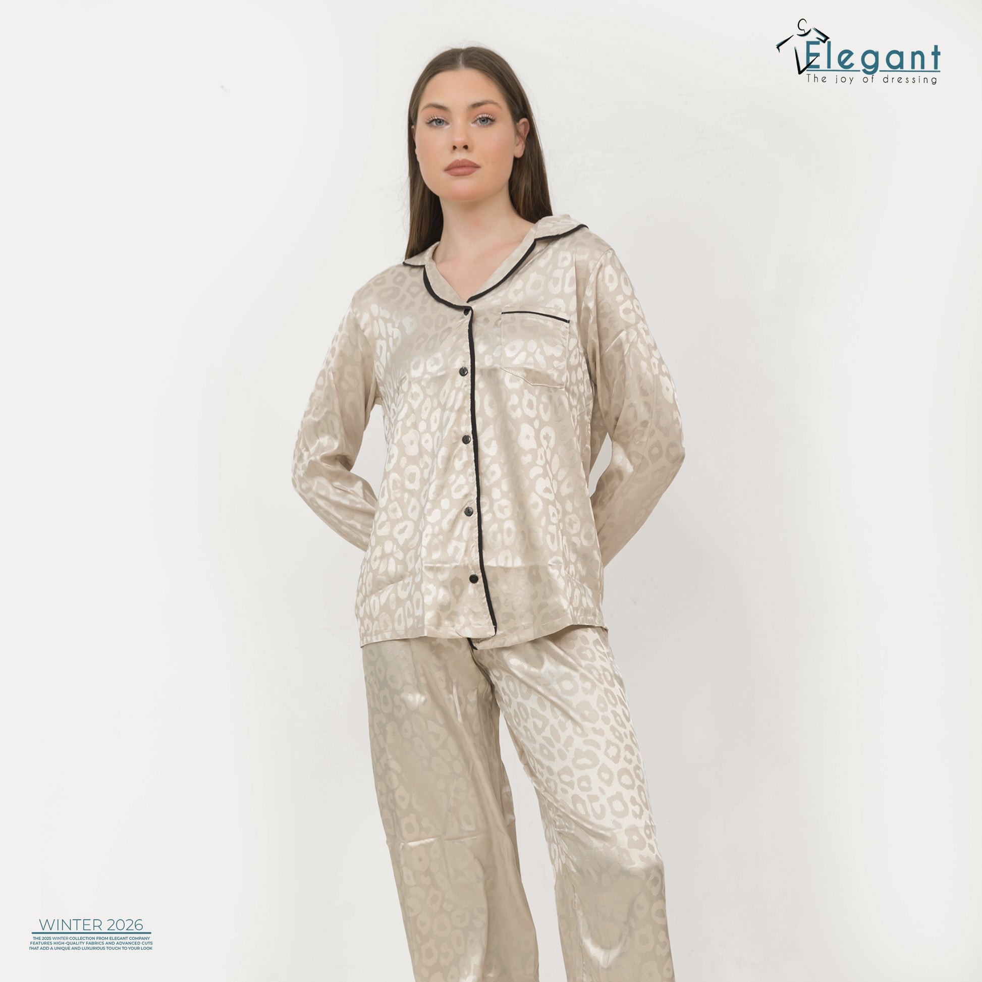 Satin Long sleeves Classic PJ Pants - Jacquard Champaign