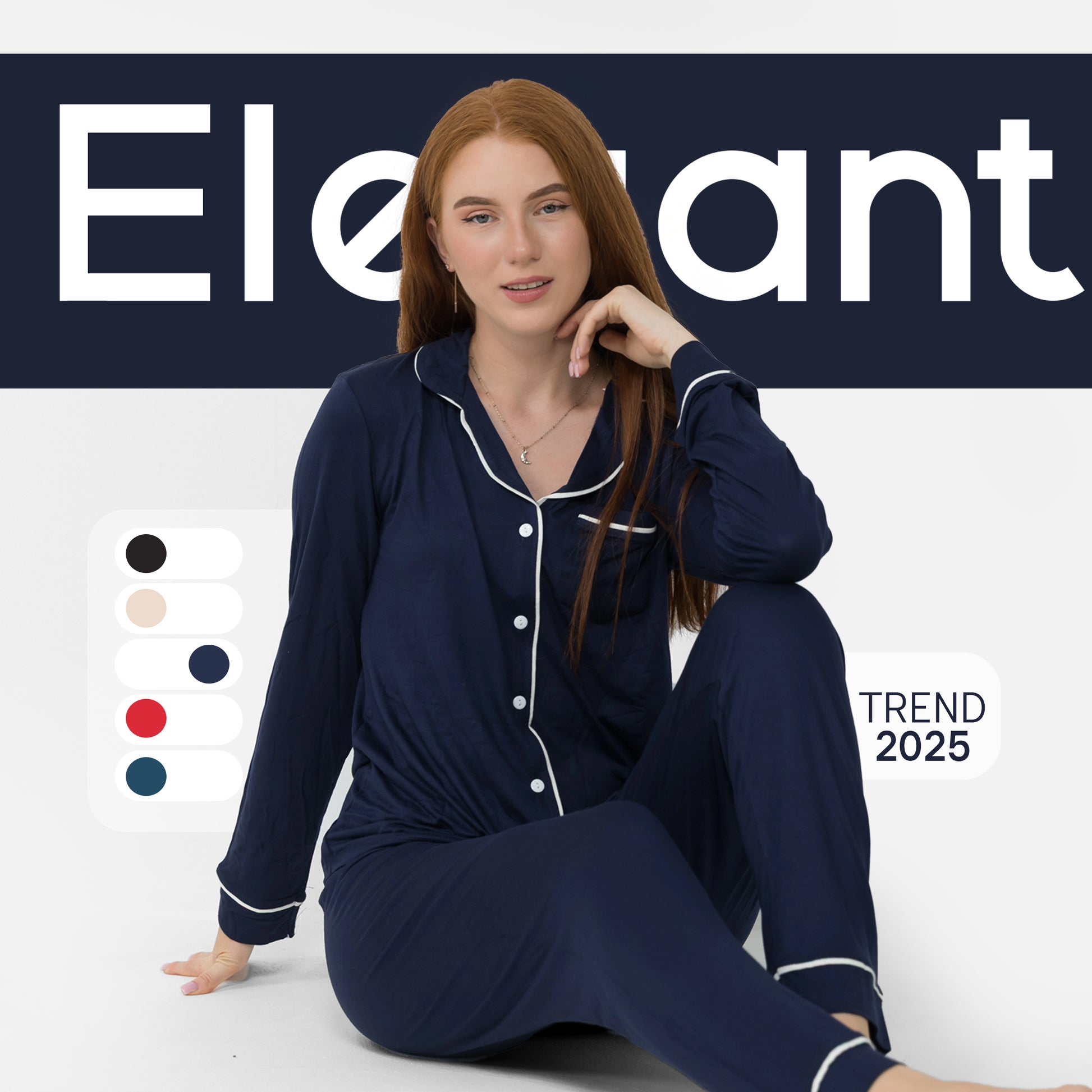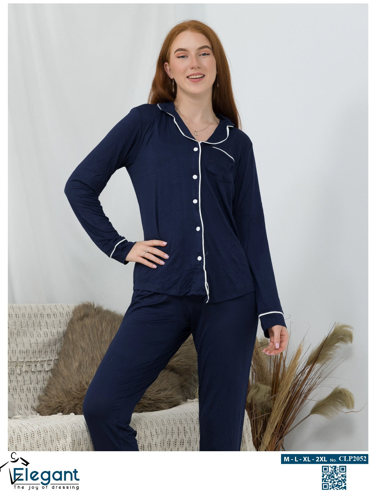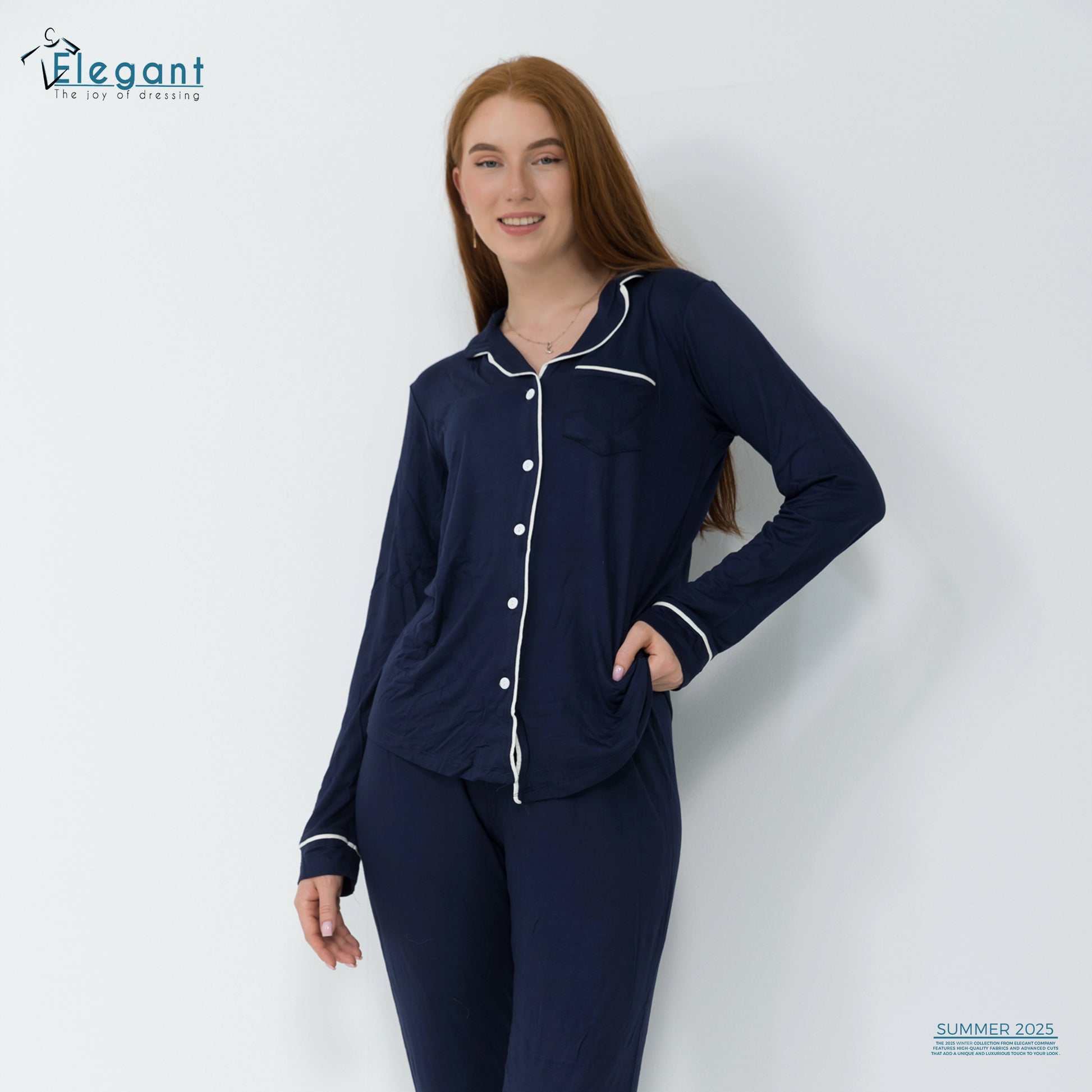Soft Cotton Long sleeves Classic PJ Pants -Navy
